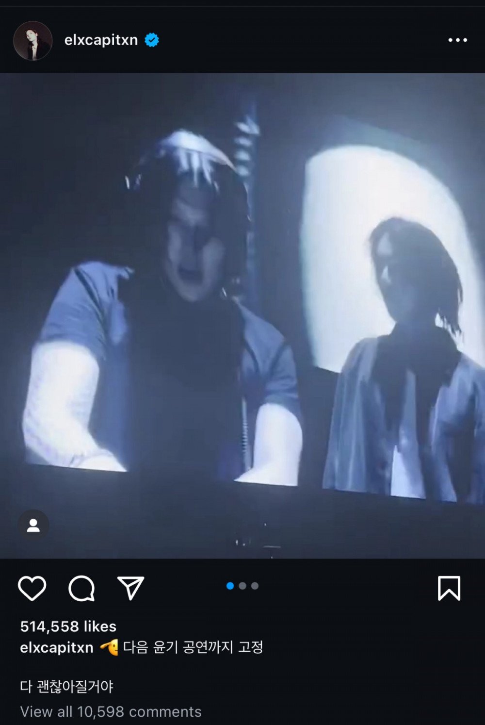貼文配文「一切都會好起來」,並將與SUGA合作表演的影片固定在置頂。