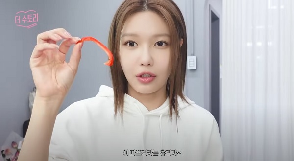 秀英還分享了她的飲食努力:「我隨身攜帶甜椒,並盡量減少碳水化合物的攝取。這些甜椒是俞利從一個甜椒農場帶來的。她把它們放在我的門前,說它們新鮮美味。」,她帶著微笑補充說:「俞利去了所有成員的家,留下了甜椒,所以我們給她起了個綽號叫『Kiki送貨巫女』,但我把它改成了『美女送貨巫女』。謝謝你,俞利,我會好好享受它們!」