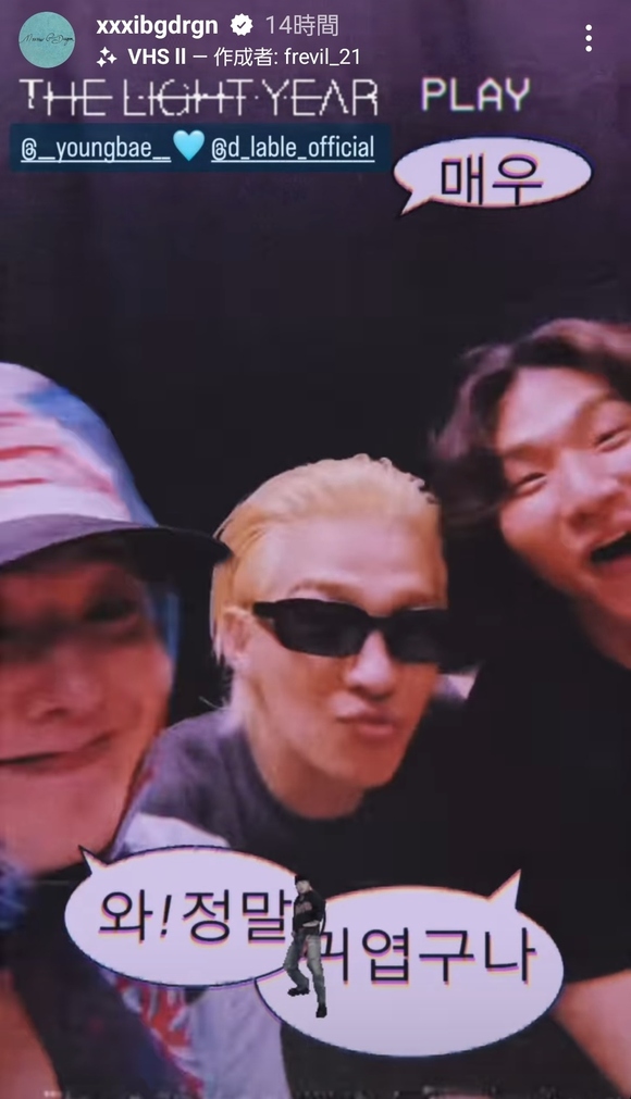 演唱會結束後,太陽透過自己的Instagram公開了與大聲和權志龍合照。權志龍也在Instagram的限時動態中發表了「真是太棒了,哇,真的好可愛」的評論,並分享了與太陽和大聲一起拍攝的充滿俏皮感的影片和背後擁抱的照片,表達了對太陽的愛意。