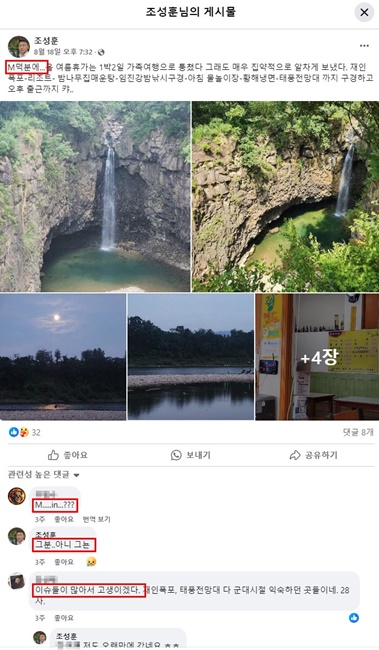 趙成勳(暫譯)室長在Facebook上分享了家族旅行的照片,並寫道:「多虧了M,今年的暑假成了為期一晚兩天的家族旅行。」