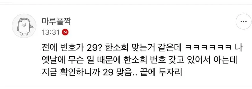 網友留言:「以前以29結尾的號碼看起來好像真的是韓韶禧的,哈哈。我之前因為某件事有她的號碼,現在確認一下,確實是以29結尾的……」