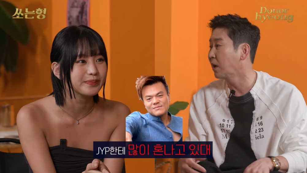 申東燁接著談到了NATTY的前經紀公司:「你的前經紀公司是JYP娛樂,對吧?」,他繼續說道:「這些天,JYP的員工被朴軫永罵說,『你們為什麼放走了NATTY』?」,讓大家現場笑了起來。