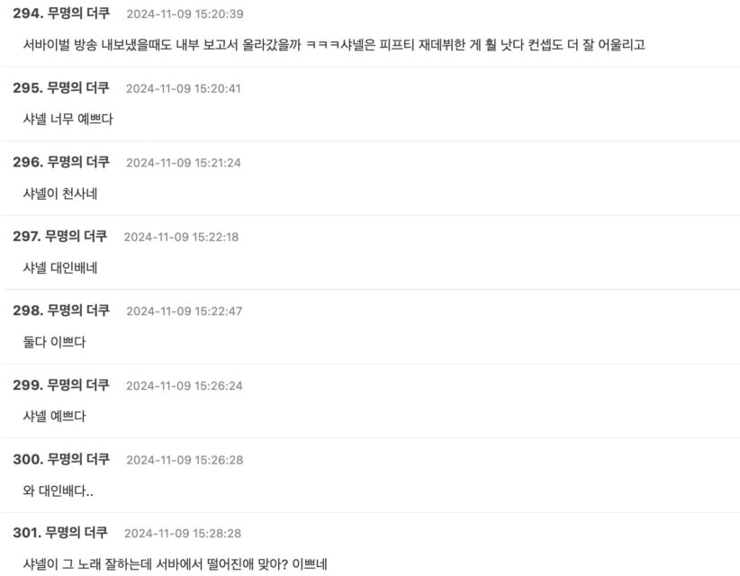 網友們看到女孩們互相支持感到很溫暖。一小部分人指出,在HYBE的醜聞之後,Chanelle這樣做相當寬容,想知道HYBE是否在內部報告中寫下了CHANELLE。