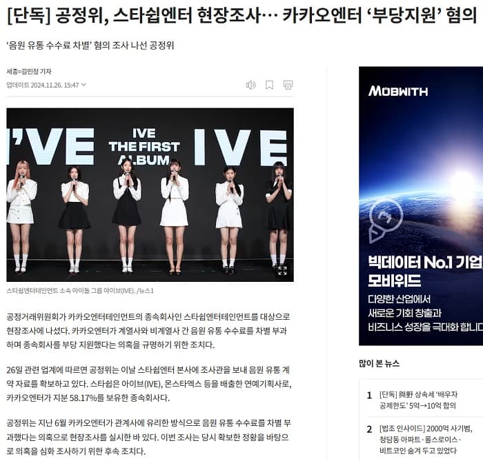 公正交易委員會目前正深入調查Melon的手續費分配爭議。今年6月,公正交易委員會已對Melon的運營公司「Kakao娛樂」進行過類似的立入調查,而STARSHIP是Kakao旗下的子公司。