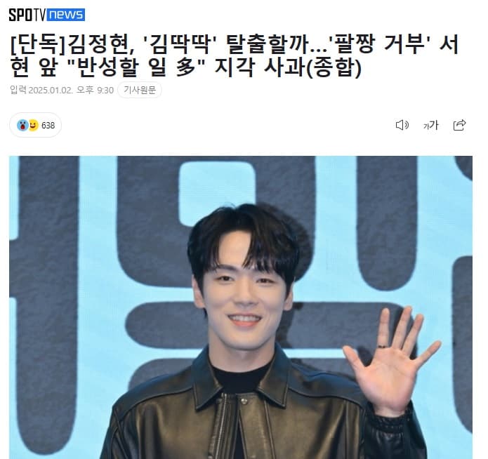 根據SPOTV News於1月2日的獨家報導,金正賢於2023年12月31日錄製「2024 KBS 演技大賞」時發表了道歉。