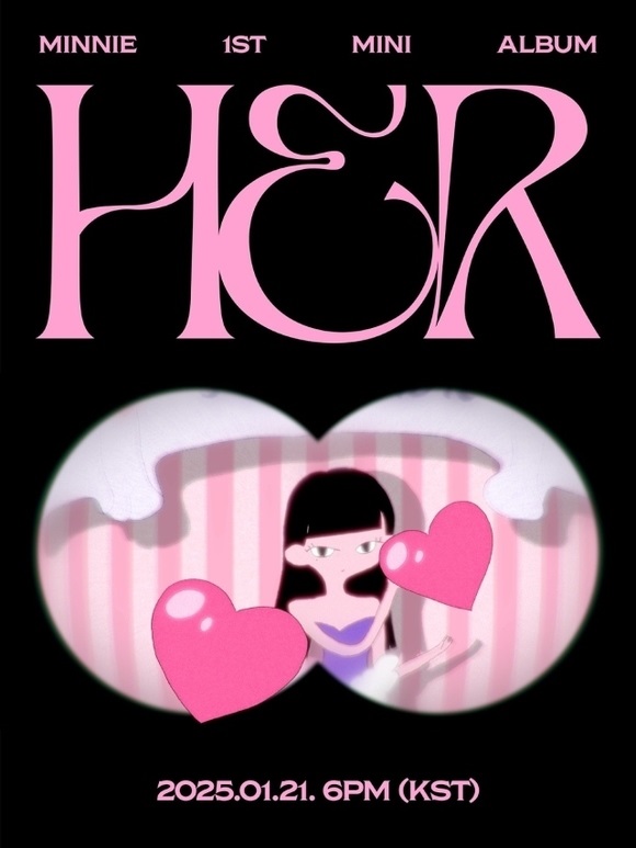 隨後公開的藝術設計以可愛的粉紅色為主調,搭配專輯名稱《HER》以及黑髮Minnie的角色形象,展現了與預告影片截然不同的氛圍。