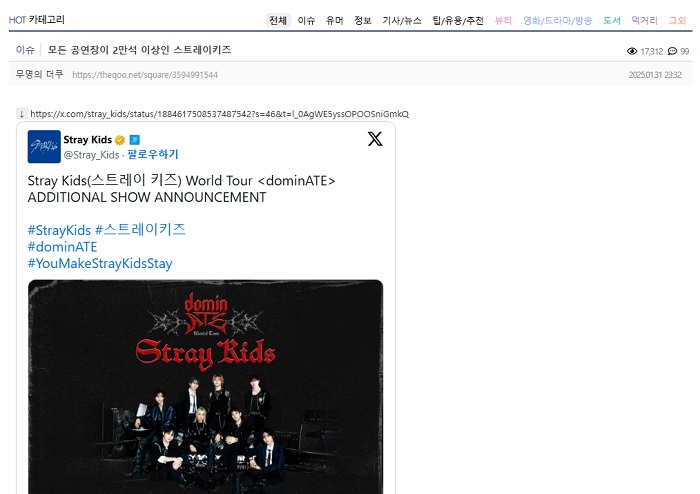 韓網友們現在紛紛表達他們對Stray Kids全球人氣和影響力的驚嘆。許多人對該團體有能力在這麼多不同國家售罄如此大型的體育場感到震驚: