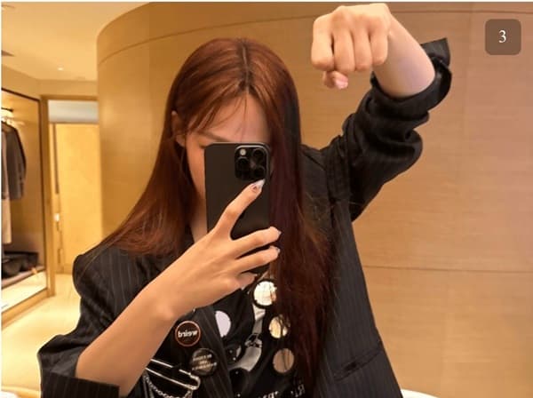 最精彩的是,一張用手機遮住臉的自拍照。女性的髮型與體型讓人強烈聯想到「Minji」。從服裝的講究程度以及遮住臉的方式,也讓人看出她是一位名人。