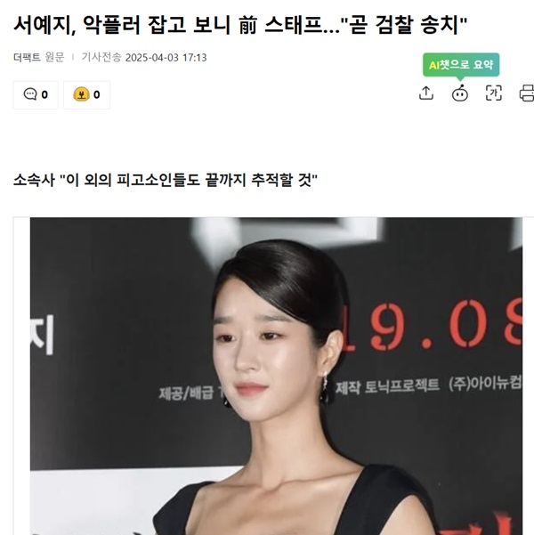 4月3日,代表演員徐睿知的經紀公司Sublime宣布,他們已對散播關於徐睿知的誹謗性評論和虛假資訊的個人提起刑事訴訟。