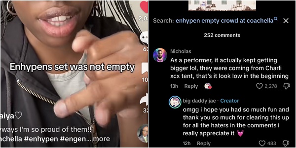 前一天,「Lisa」登上了同一個舞台,當時現場聚集了大量觀眾。由於「ENHYPEN」粉絲主張「超越了BLACKPINK在科切拉的觀眾數」,這也讓Blink粉絲拿票房狀況來揶揄,進而使得那些照片和影像備受關注。