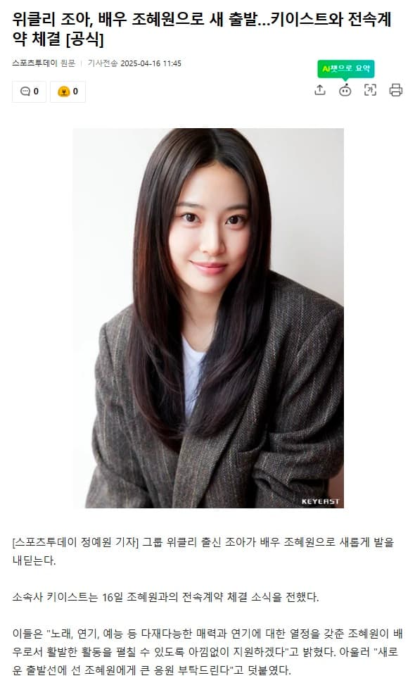 4月16日,Keyeast娛樂宣布,演員趙慧洹(曾以女團Weeekly成員ZOA的身分活動)已與本公司簽訂專屬合約。