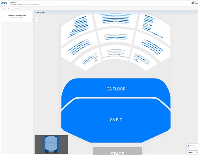 首場洛杉磯公演(可容納2,400人),地面席是否已售罄尚不明朗,但陽台席明顯可見「藍圈(空位)」標示。演唱會將於四天後舉行。