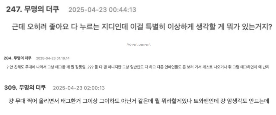 「感覺這根本就是在一篇關於舞台的貼文裡標註一下人──也就這樣而已。我是TWICE粉,老實說我完全無感。」