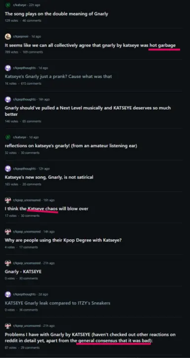 HYBE旗下、以美國為據點的女子團體「KATSEYE」,於30日13時發行了新單曲《Gnarly》。從海外K-POP粉絲的反應來看,對此曲評價兩極。批評點多樣化,包括「歌曲不好聽」、「歌詞很糟糕」、「MV不適合17歲的YOONCHAE」等。