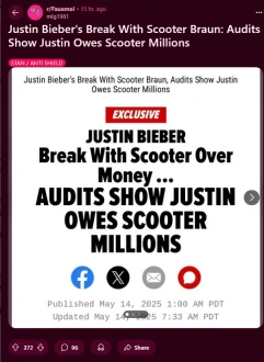 ▼「說實話,小賈斯汀現在的困境主要要怪斯庫特·布萊恩。他從小就讓小賈斯汀拼命工作,結果讓他過勞倦怠。我覺得斯庫特·布萊恩在法律上沒錯,但道德層面上,他的承諾很可疑。我也能理解小賈斯汀為什麼不想付錢,畢竟斯庫特·布萊恩一直在剝削他。」