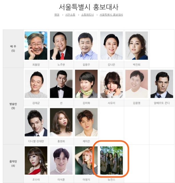 截至目前(2025年5月16日)在首爾市官方網站的「首爾特別市宣傳大使」欄目中,已不見 NewJeans 的照片。