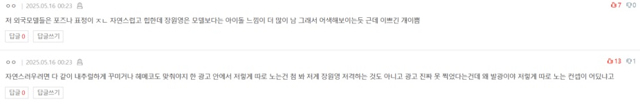 「如果想要看起來自然,就應該每個人的造型都走自然風,或者至少要統一髮型和妝容。我還從沒看過哪支廣告演員群看起來這麼毫無連結。這不是在針對員瑛,只是這支廣告本身做得很糟糕。大家為什麼要大驚小怪?根本沒有什麼『故意讓人顯得格格不入』的概念。」