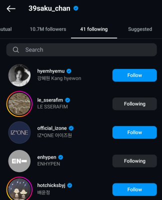 LE SSERAFIM成員宮脇咲良追蹤了ENHYPEN的Instagram官方帳號而引發關注。