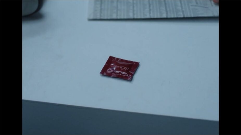 觀眾迅速注意到那包糖果的包裝刻意設計成保險套包裝的模樣,這顯然是預告故事情節的核心焦點。