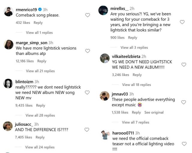vilkaiteelzbieta:”YG我們不需要應援棒,我們需要新專輯!!!!”