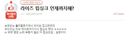原PO表示:「RIIZE到底還要假唱多久?BOYNEXTDOOR在Lollapalooza的現場表演超棒,但RIIZE跑到美國KCON還是假唱,真是笑死我了。除了幾個短暫蓋唱AR的片段,其他全是假唱……說真的很失望。」