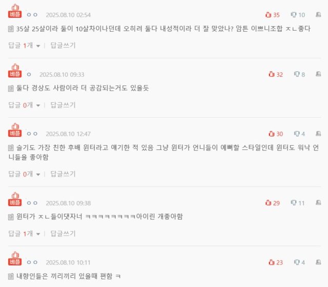 但現在看起來,在Red Velvet和aespa所有成員中,這兩位反而是最親的ㅋㅋㅋ 好可愛。」