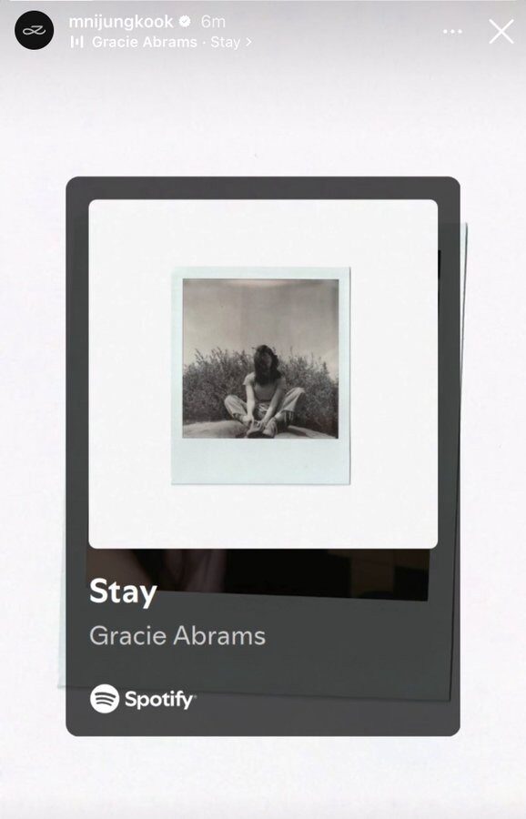 用戶@lizkookk7表示 : “田柾國公開Gracie Abrams的歌曲《Stay》,剛好就在Lisa的story Film《Dream》釋出的同一天!而且田柾國分享的歌詞片段正好是: