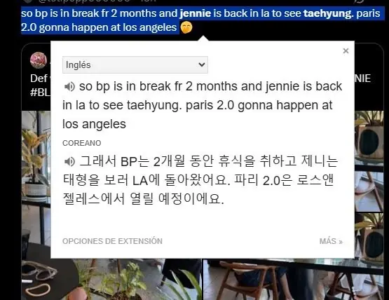 這些照片被轉到韓網後,有留言聲稱Jennie已經回到韓國是為了見V。