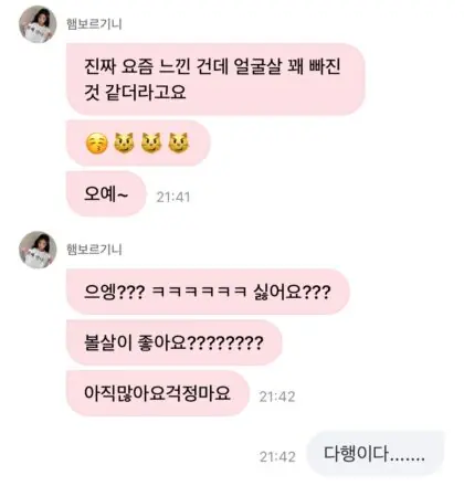 Wonhee表示:”我的臉頰肉還是牢牢黏著呢。”