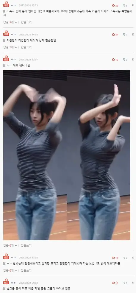 她兩場演出的飯拍截圖近日在韓網Pann爆紅,細緻呈現她的身材比例,掀起韓網熱議。