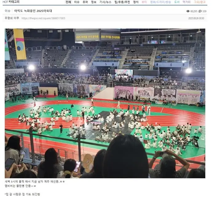 韓網TheQoo上最近一則貼文,引發外界對MBC年度節慶特別節目《偶像明星運動會》的熱烈討論。貼文指出,2025 年度的錄影拖了好幾個小時,現場粉絲卻沒有受到妥善照顧。