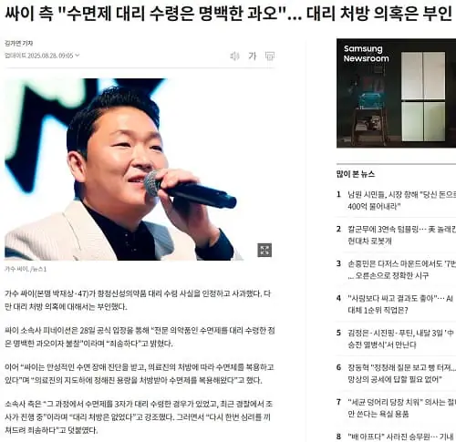 歌手PSY承認在沒有面對面診療的情況下,由經紀人代為領取向精神藥物,但否認所謂「代開處方」的疑惑。