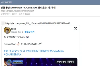 日本男子團體「Snow Man」於28日播出的Mnet《M Countdown》亮相,帶來〈CHARISMAX〉舞台表演。