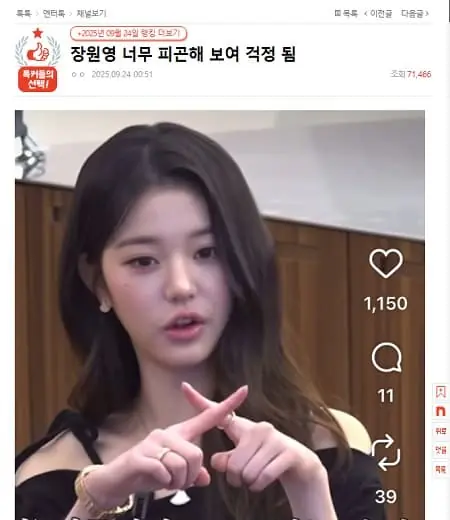 粉絲再度對張員瑛的健康表達擔憂。由於行程高強度、壓力大,這樣的擔心幾乎貫穿了她的整個偶像生涯。