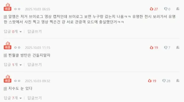 「那張RM的截圖是來自他的Vlog。你如果真的去看Vlog,就會看到他跟誰一起去ㅋㅋ他們只是去看一個很有名的展覽,在熱門景點拍了照片和影片,基本上就是徹底的觀光客模式ㅋㅋ」