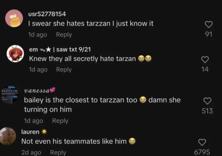 由於許多人對Tarzzan的負面觀感,不少人認為這股情緒已延伸到團內成員之間,並導致內部不合。