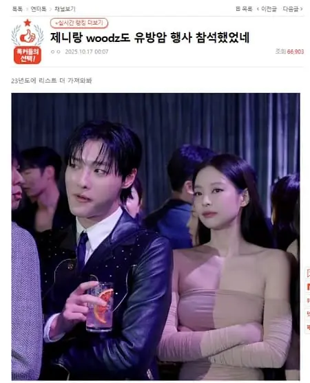 其中,網友特別注意到BLACKPINK的Jennie與歌手 WOODZ在2023年曾參與該活動。