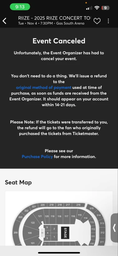 然而,其中一場演出已宣布取消。近期,購票者收到訊息稱「活動已被取消」「主辦單位很遺憾不得不取消活動」。被取消的是原訂於 11 月 4 日在美國喬治亞州舉行的場次(場館容量逾一萬人)。