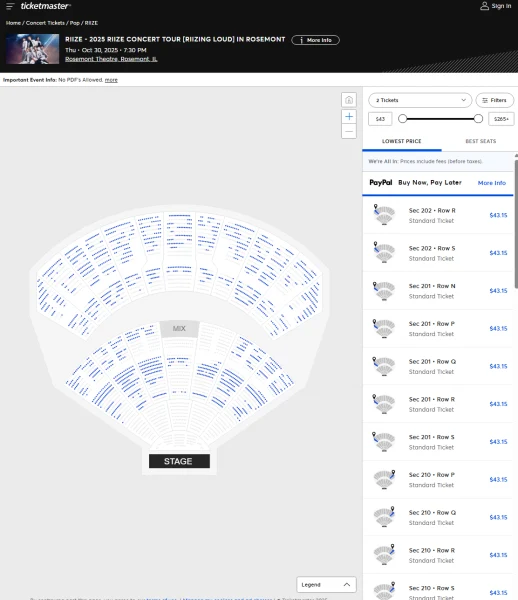 查看售票網站可見,截至 10/18,美國巡演首場(伊利諾州)座位圖上象徵空位的「藍點」相當醒目。看台區門票原本以80美元區間開賣,現在降到40美元、幾乎對折,但情況仍未好轉。外界甚至開始擔心該場演出能否如期舉行。