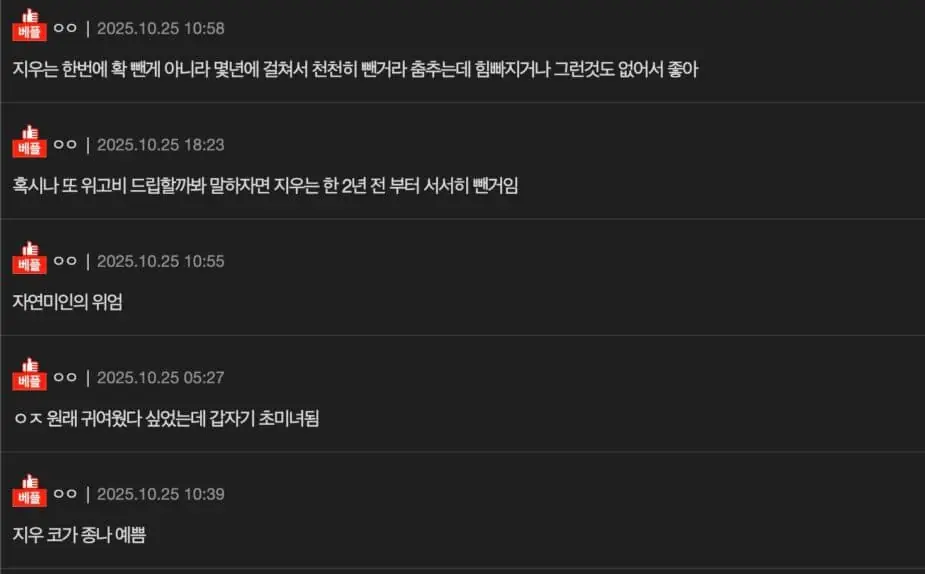 「Jiwoo不是一下子就瘦下來的,而是花了好幾年慢慢減肥。這就是為什麼她跳舞時仍然有力量、不會沒精神。」