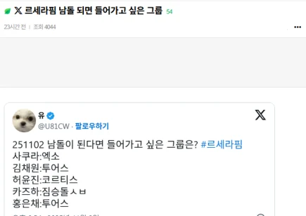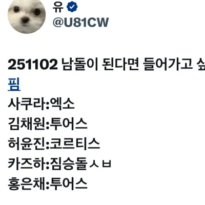 LE SSERAFIM於2日舉行新單曲「SPAGHETTI」粉絲簽名會。對於粉絲提問「如果是男性偶像的話,想加入哪個團?」成員們給出了以下回答(據粉絲帳號整理):