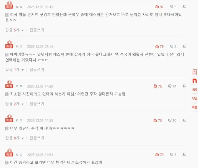 這則訊息在網路上引發了相當分歧的反應,有人覺得聽起來好像蠻合理的,尤其是在先前有田柾國去看aespa演唱會的爆料貼文之後,但也有人認為這段話太不顧及當事人、很不敏感,根本不能算是什麼「證據」。