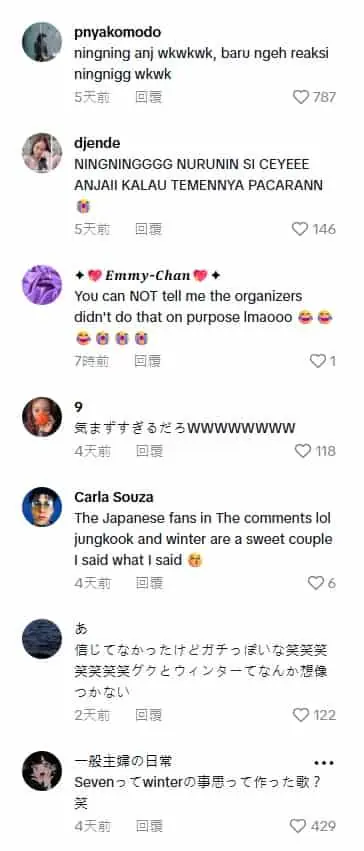 「留言區的日本粉絲們也太好笑,柾國跟Winter真的是很甜的一對,我話就放這裡了 😘」