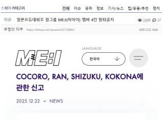 經紀公司Lapone於22日表示:「成員COCORO(加藤心)、RAN(石井蘭)、SHIZUKU(飯田栞月)、KOKONA(佐佐木心菜)將於12月31日專屬經紀管理合約到期,並結束作為ME:I的活動。」