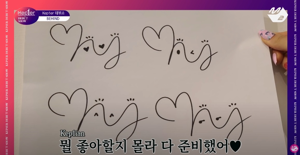 這是1月24日在YouTube賬號M2上公開的Kep1er出道秀幕後影片。在該處女秀中,舞台佈景處處都有成員簽名,成員金采炫、江崎光、休寧巴伊葉等3人講述了簽名相關的幕後故事。
