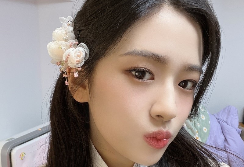 影片中的嚴智在自由的氛圍中跳著舞。生動的表情和粉紅色的妝容讓可愛的魅力倍增。