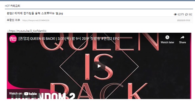 5日,韓國網路社區「Theqoo」上出現了「參與預告的團體被悄悄爆料的說法」的文章。該投稿進入了熱議。
