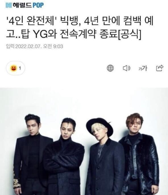 除此之外,YG娛樂公司還於本月初宣布Bigbang將於春季合體發布新歌,MV也完成了拍攝工作,目前正在進行最後的準備工作,時隔4年再次回歸的Bigbang將帶來怎樣的面貌,也備受期待。