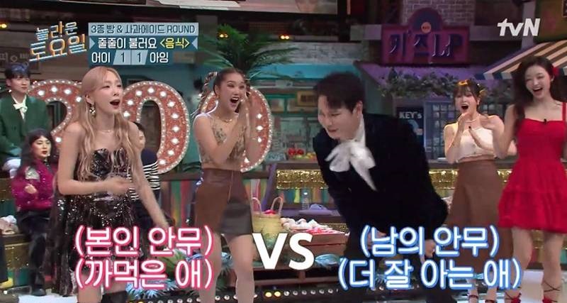 當出現歌詞裡有食物的歌曲是什麼?」的問題時,由Key、少女時代太妍、OHMY GIRL成員組成的組合全部給出了正確答案。