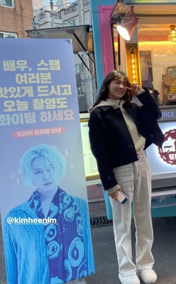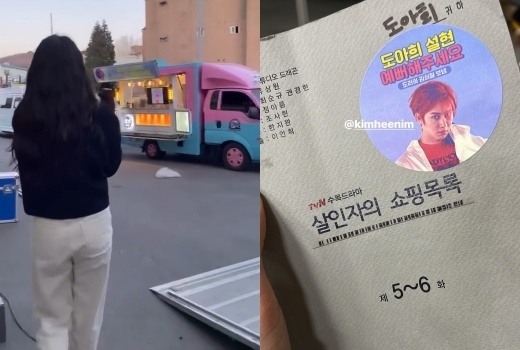 影片中,她確認咖啡車後說:「太棒了,是希澈哥送的吧? 真厲害。」在汽車旁邊的橫幅上寫著「演員和工作人員們,請吃得津津有味,今天的拍攝也請加油」的訊息。西龍正在拍攝tvN新劇《殺人者的購物目錄》。